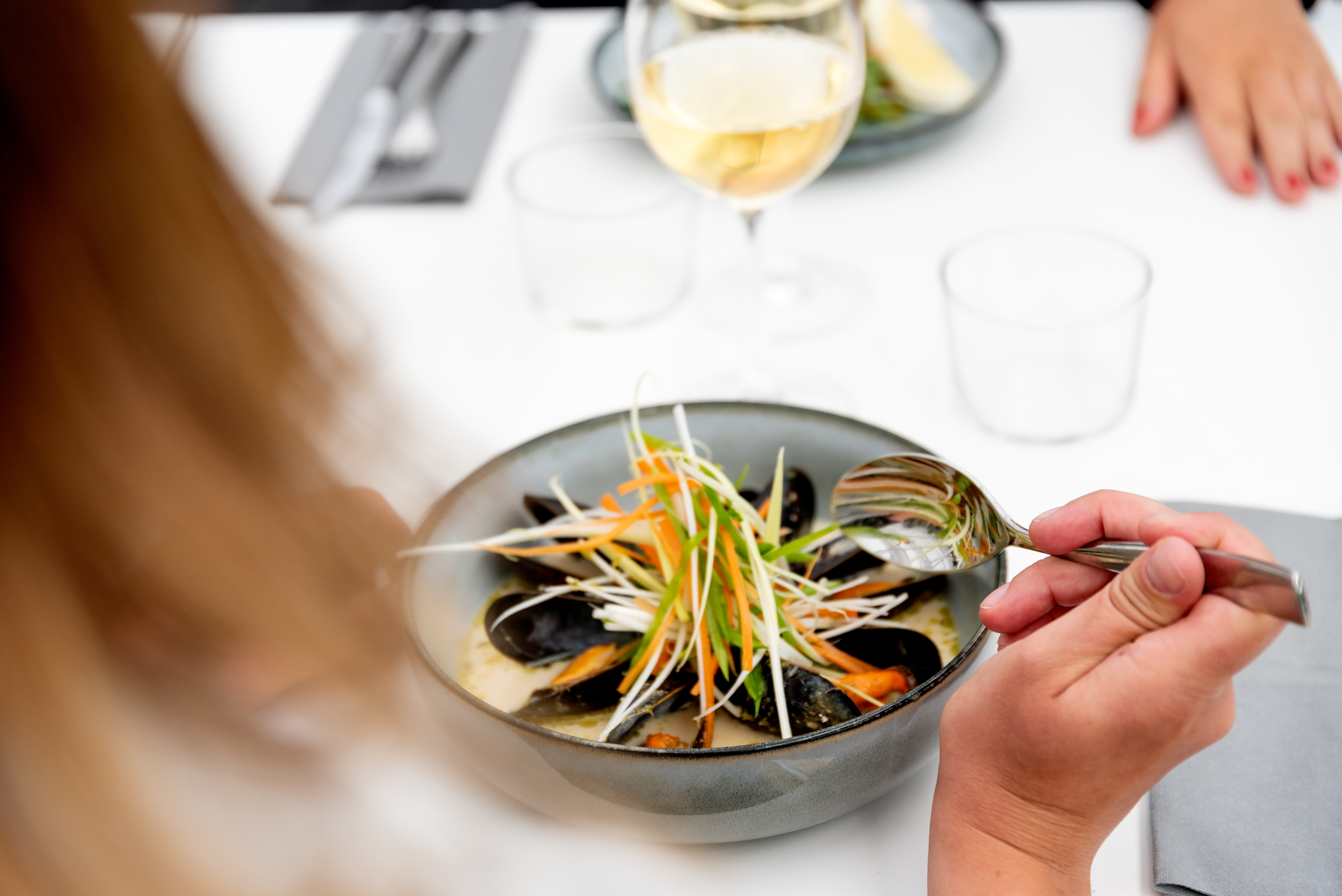 And that is exactly how we want it to be. Our goal has been to create some sort of lounge, kitchen atrium, and you are more than welcome to us. We will present a menu where the Bohuslänian mussels, directly from Scanfjord and which are organic and rope cultivated, are in the centre. However, we will also offer other alternatives, as our mussel burger, our own fish and seafood soup, and a vegetarian dish. We cook our food from scratch and apart from our bohuslänian mussels we try to find other local products to collaborate with based on seasonal variation.